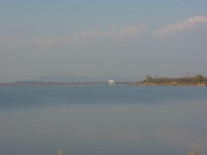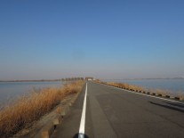 - 谷中湖中の島への道