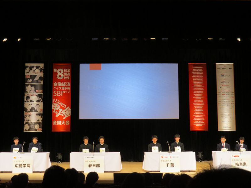 第8回エコノミクス甲子園全国大会(全国高校生金融経済クイズ選手権、後援:内閣府 文科省 金融庁、協賛:地方主金融機関)が2月2日(日)に東京虎の門イイノホールで開催され、全国各県予選を勝ち抜いたチームが出場しました。