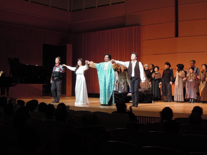 春日部高校同窓会と楽遊倶楽部「プレゴ」共催の、第17回センテニアル・オペラ公演が、2月16日(日)春日部高校音楽ホールで行われました。今年の演目は15世紀のヴェネツイアを舞台に、キプロス総督のムーア人オテロの心に渦まく愛と嫉妬、彼の部下イヤーゴの抱く野望と復讐を描くオペラ「オテロ」です。420名収容のホールがほぼ満席となる大盛況の中、観衆を魅了する素晴らしい演技を鑑賞することができました。カーテンコールでは、惜しみない拍手がしばらく鳴り止まず、主催者からは花束の代わりに高級ワインが贈られました。