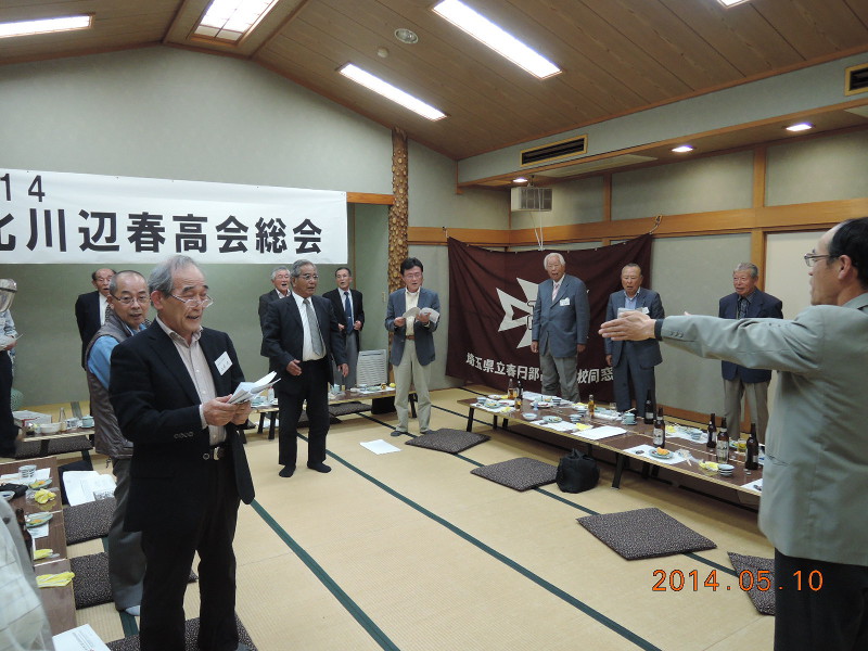 2014年5月10日地元の割烹「かたやま」にて、23名(来賓含む)の出席を得て平成26年北川辺春高会総会と懇親会が開催されました。春高同窓会本部から今井会長および戸井田事務局長、そして地元加須市在住の野中名誉会長をご来賓にお迎えしての会合となりました。