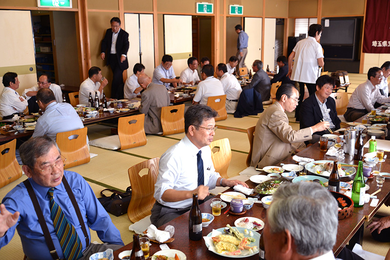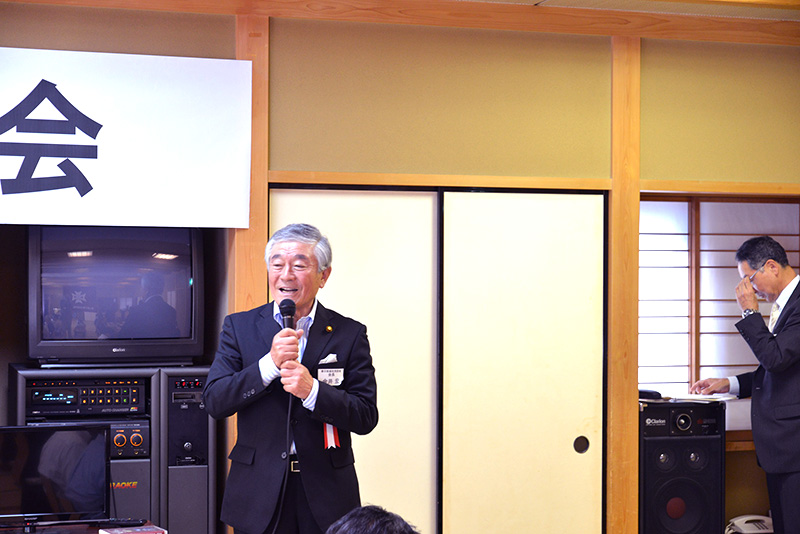 第二部は、場所を替え工藤校長先生にもご出席いただき懇親会を行いました。昨年の三井ガーデンホテル柏と正反対の和風形式で、当会菊田会長挨拶に続き、今井同窓会会長に祝辞をいただき、今回参加最年長ながら、矍鑠とした千代田忠三さん(高3回卒)の乾杯の音頭で開会しました。