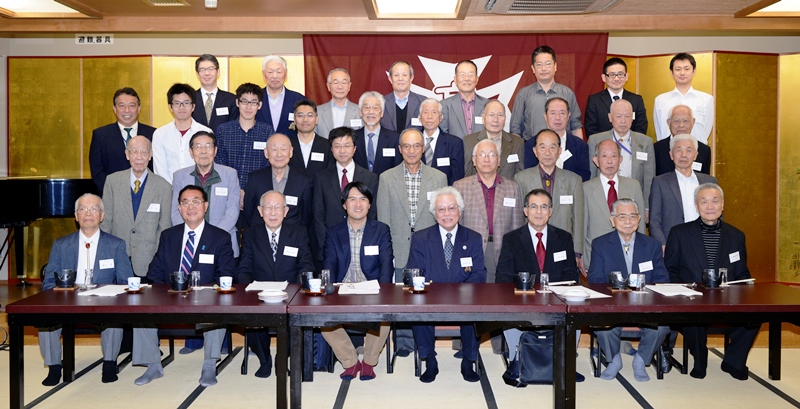 総会終了後には、高橋徹副会長(高6回卒)の乾杯の音頭でにぎやかな懇親会となり、これまでで一番若い高56回の会員も一緒になって、楽しい宴となりました。安孫子征会長(高13回卒)からはプレミア焼酎「森伊蔵」が、また山田将也さん(高36回卒)からは山形の銘酒「秀鳳」の差し入れがあり、またたく間に空瓶になったことは言うまでもありません。ごちそうさまでした。懇親会の最後は、小澤正男さん(高11回卒)のリードにより全員で校歌を三番まで歌い、お開きとなりました。