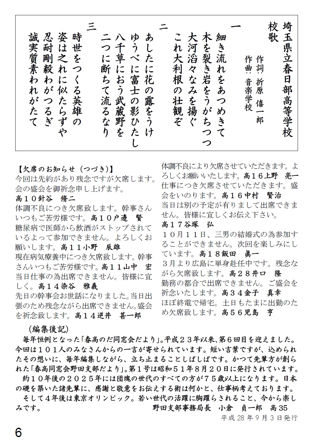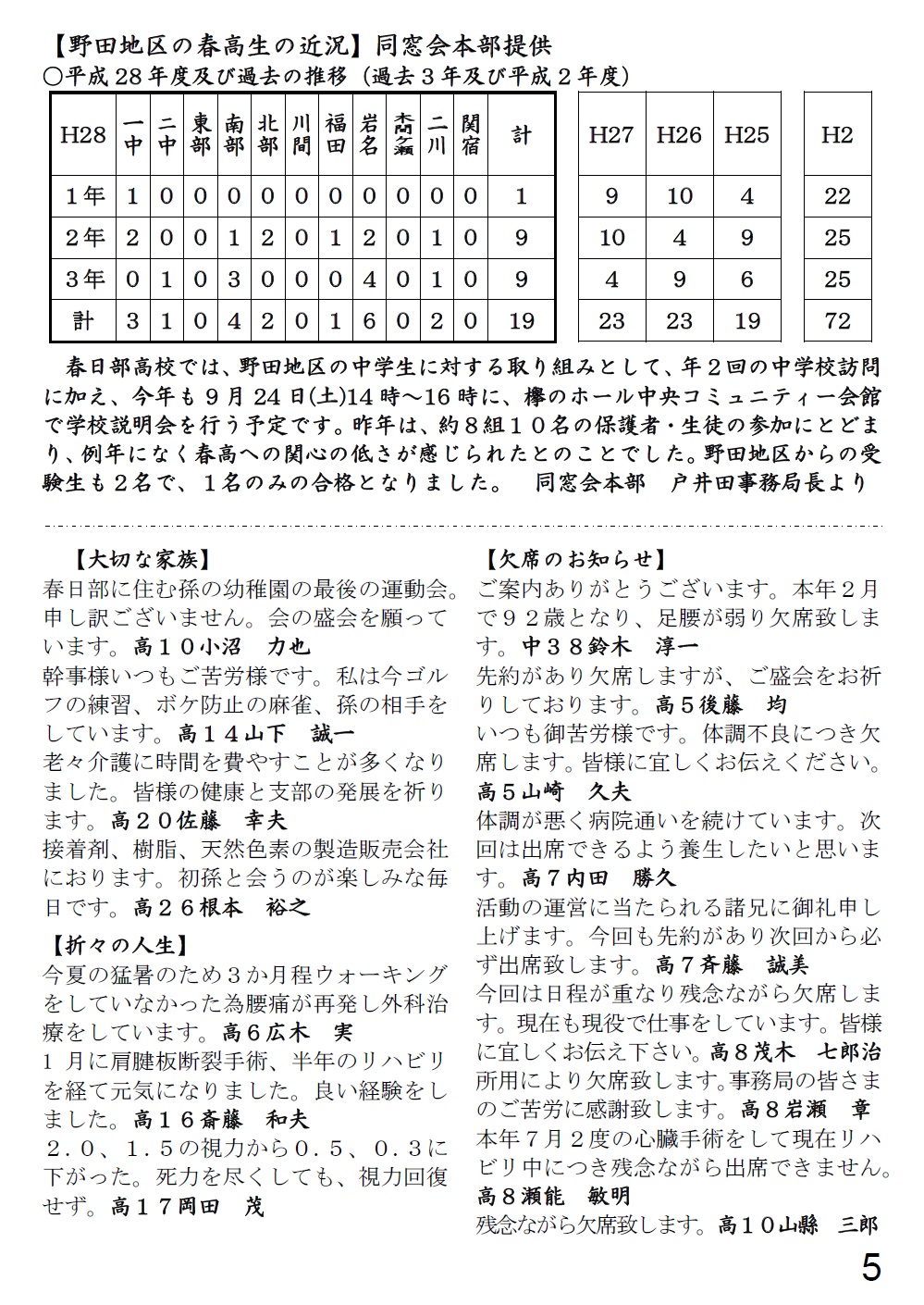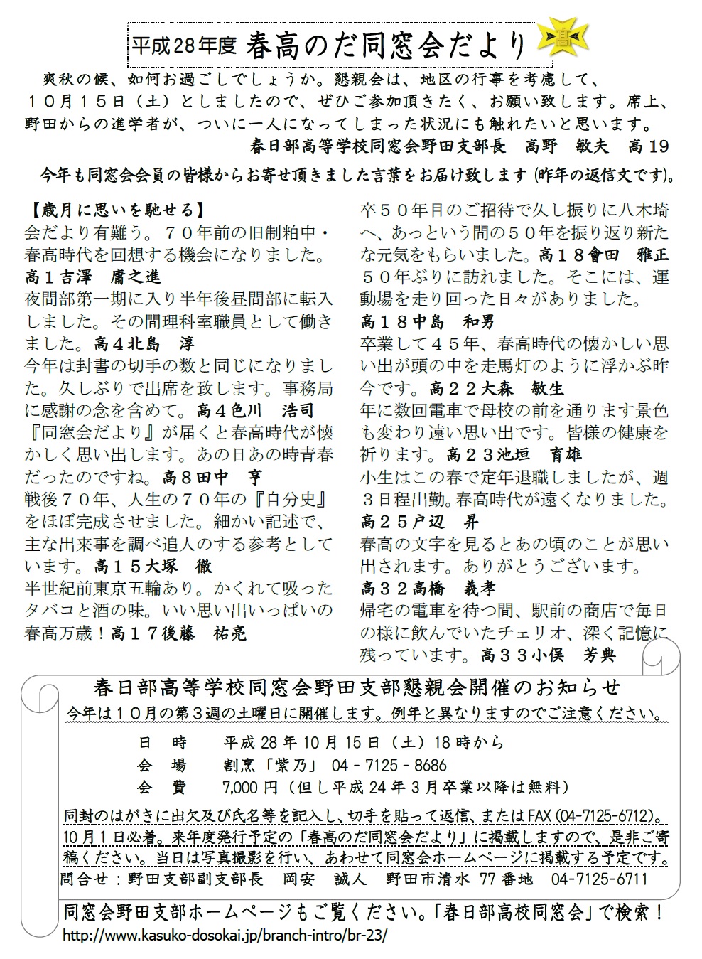 [ 平成28年度春高のだ同窓会だより ]
