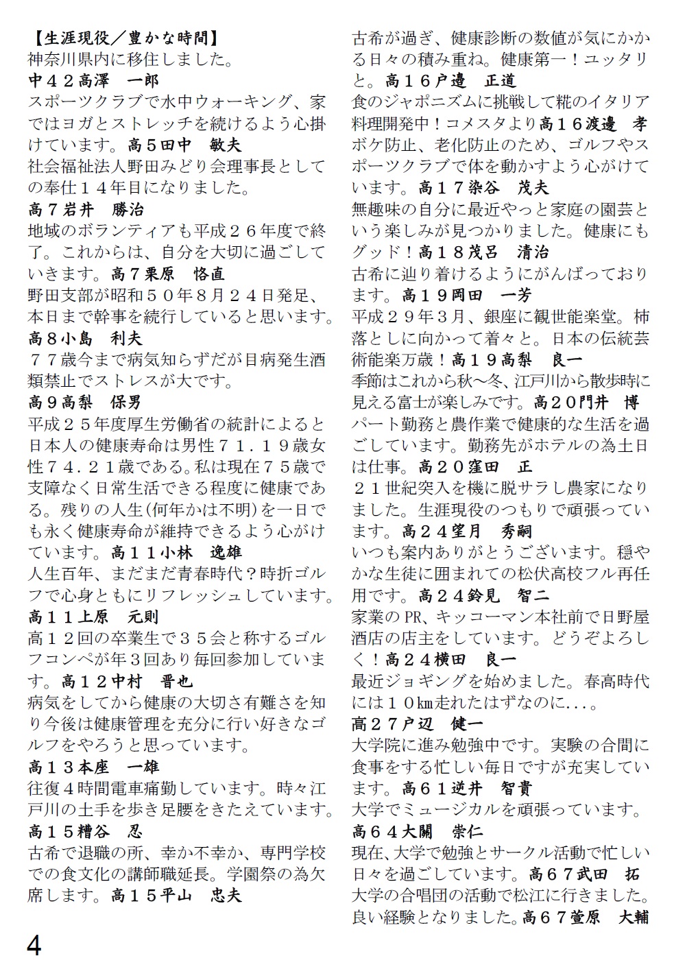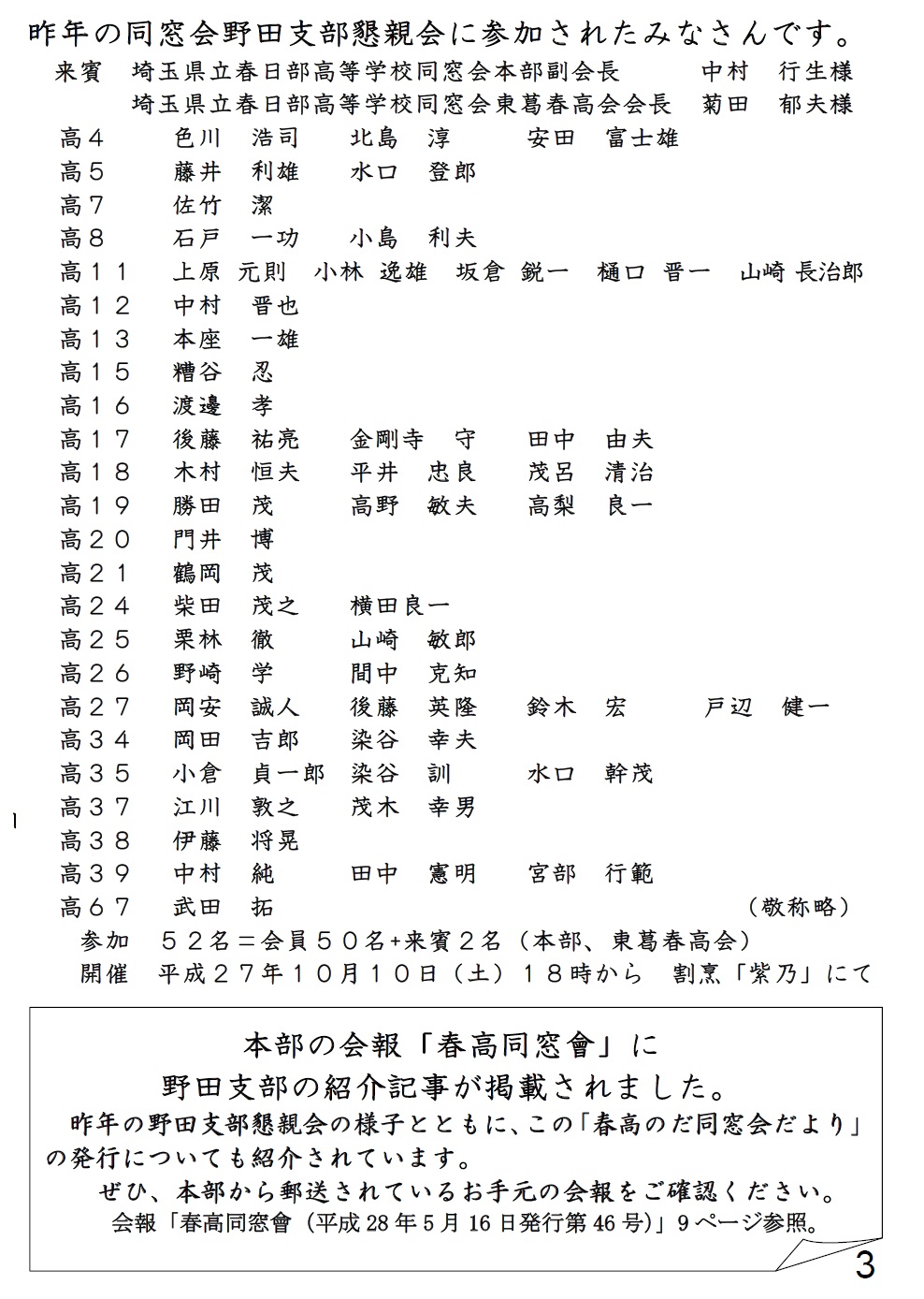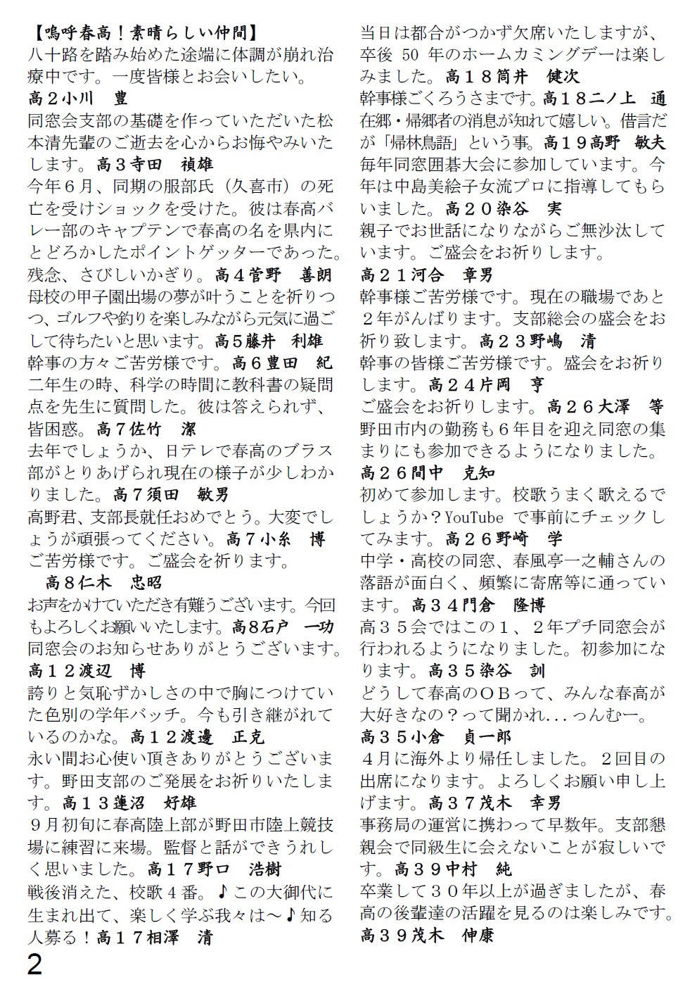 [ 平成28年度春高のだ同窓会だより ]