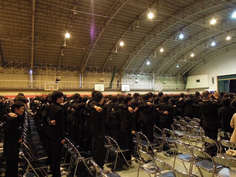 現生徒会長の根岸晃平くんが感謝を込めた「送ることば」を、卒業生を代表して岡田拓己くんが素晴らしい「お礼のことば」を述べました。式の最後は、応援団長であったの山田直樹くん指揮のもと、参列者全員で声高らかに校歌を斉唱しました。厳粛の中にも心和ませる雰囲気に包まれ、感動的な卒業式でした。