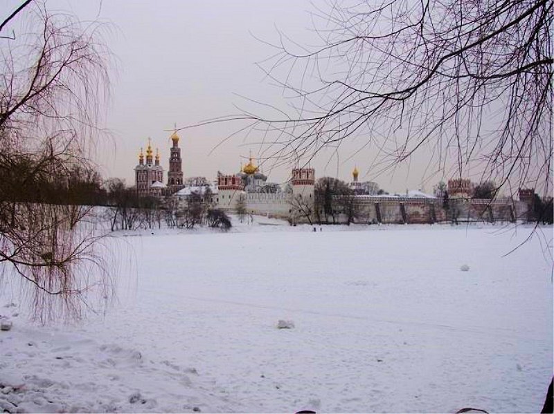 こちらは世界遺産の「ノボデービッチ修道院」です。写真手前のだだっ広いスペースは、凍った「池」です。地面ではありません。この池はチャイコフスキー作曲のバレエ音楽『白鳥の湖』のモデルになった由緒正しい湖、と言うか規模的には池です。