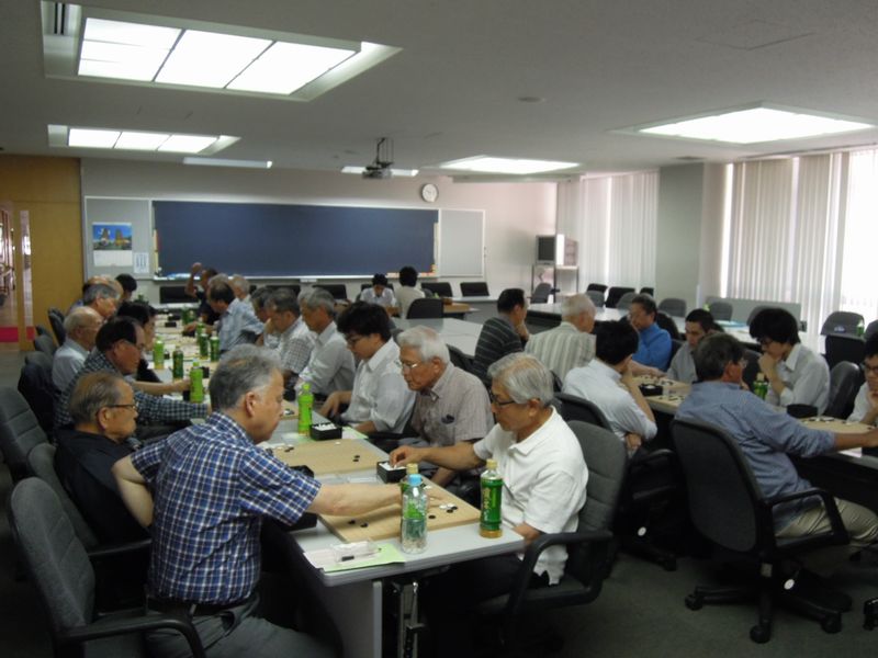 岡田新会長となって最初の囲碁クラブ大会も、今年で7年目を迎え順調に参加者が増え、生徒7名を含めた35名の皆さんが、それぞれのレベルに合わせ懇親を深めながら対局を楽しみました。また、今年は全国高校囲碁選手権大会での3連覇がかかっており、現役の囲碁部員達に対して熱いエールを送りました。