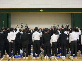 どの先生方も春高への思いを強くかたり、最後に、応援指導部と吹奏楽部での校歌で式を終えました。