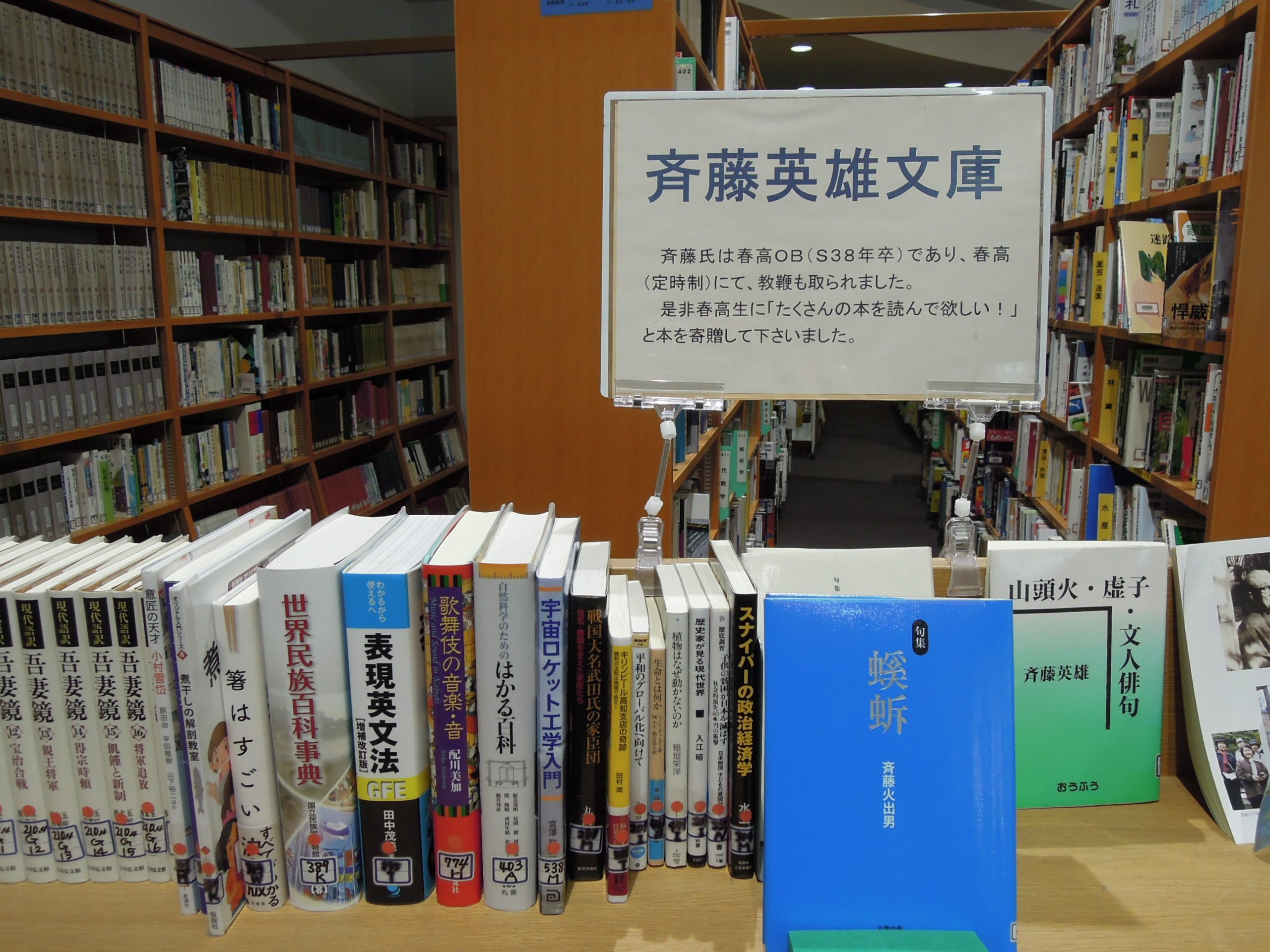 齊藤先生は、他にご自身の俳句集をも図書館及び同窓会にご寄付をいただいてきました。また、以前にも本の購入費用としてご寄付があり、図書館には齊藤文庫が設置されています。