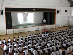 今日は、体育館にて9:00よりオープニングセレモニーが始まりました。記念講演で、2020東京オリンピック男子三千mSCに出場した青木涼真(高68回卒)選手の講演がリーモートで行われました。