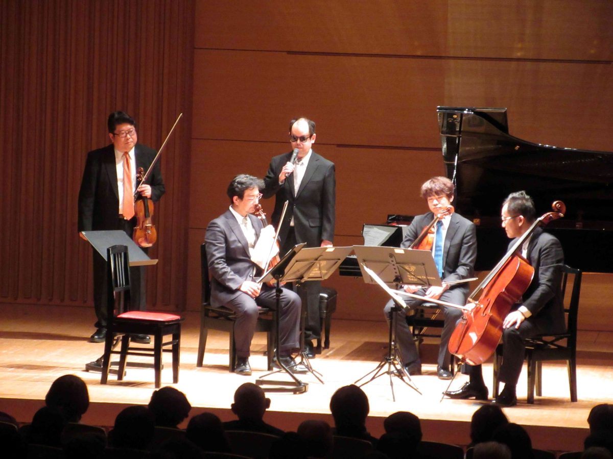 演奏はN響精鋭メンバーに加えて世界的にも著名なピアニスト 梯剛之 さんをスペシャルゲストに迎え、ピアノ五重奏の演奏会。出演者はピアノ梯剛之(かけはしたけし)さん、第1ヴァイオリン 森田昌弘(もりたまさひろ)さん、第2ヴァイオリン 白井篤(しらいあつし)さん、ヴィオラ 中村洋乃理(なかむらひろのり)さん、チェロ 市寛也(いちひろや)さん。