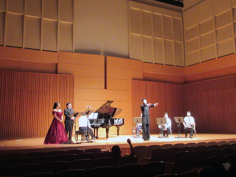 演奏曲目は、クラシックやオペラ歌曲から現代音楽、ジャズ、ポップス、アニメ、民謡と幅広いジャンルで合奏と演奏が行われました。観客の方々は、とてもすばらしい演奏に感動をされていました。
