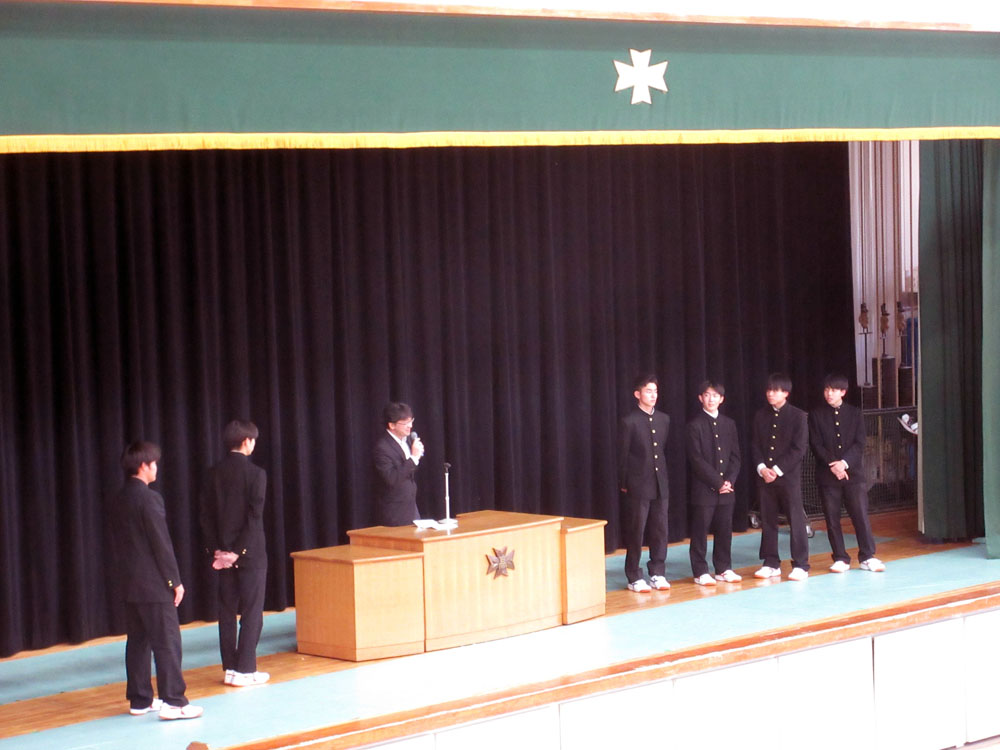 - 校長先生から関東大会出場選手への激励挨拶