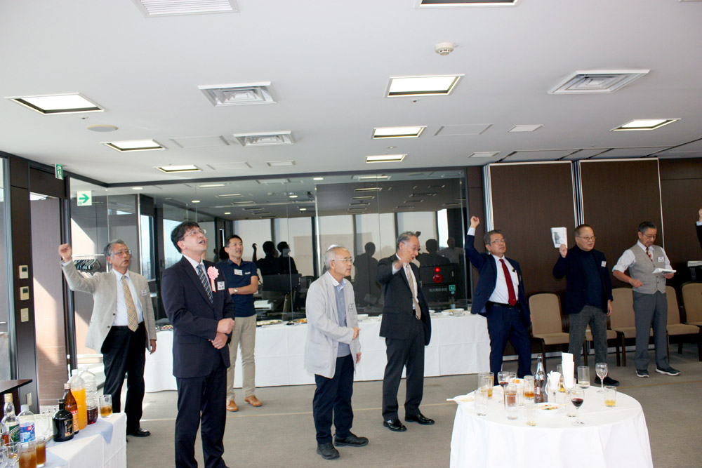 引続きの懇親会では、飯島同窓会副会長から大河滔々基金についての現状報告とご挨拶をいただき、最後に恒例の懇親会と校歌斉唱で盛り上がりお開きとなりました。