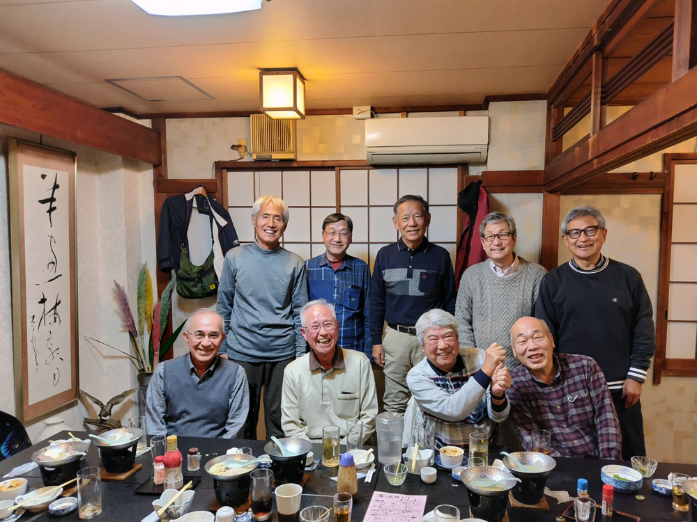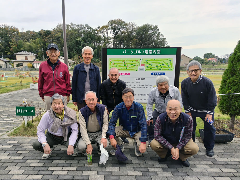 参加者は9名。心配された天気でしたが、温暖な曇り空、2ラウンド36ホールを満喫しました。パークゴルフの後は、上尾駅西口の斎藤芳男さん(24回)が営む「居酒屋 旬魚旬菜 ただ」で懇親会を行いました。