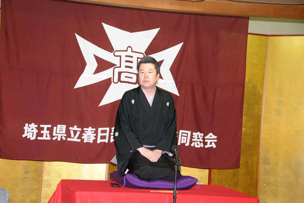 記念演目としまして、令和6年10月にかすかべ親善大使に就任され意気軒昂であられる三遊亭楽生師匠(坪山隆行様・高48回卒・生徒会長)をお招きいたしました。