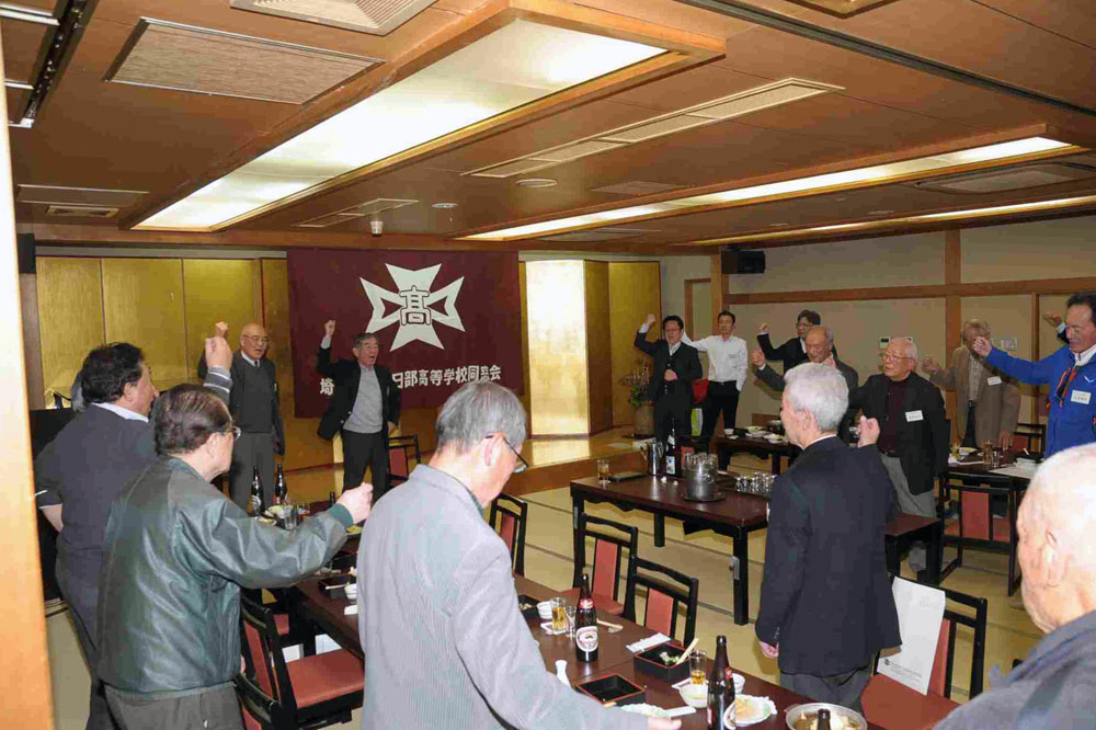 名残惜しく、まだまだ話が尽きないところではありましたが、校歌斉唱の後、柳瀬正八郎さん(高9回卒)の挨拶で締めました。