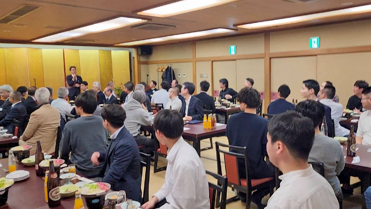 第二部は春日部駅ヤマヤ新館にて懇親会のかたちで催されました。ここでは、木村泰明さん(高44回)の司会の下、長谷川博さん(高29回)の絶”口”調な乾杯発生でスタートしました。続いて、歴代応援指導部の顧問の先生の挨拶があった後に細谷周平さん(高77回)のリードによる春高健児を斉唱し、世代の隔たりを感じることなく一同が肩を組んで熱狂しました。その後も熱が冷めることなく、「OB会に上下関係はなし」という言葉の下、OB同士の親睦を深め合い、片山渉さん(高73回)のリードによる校歌を斉唱しお開きとなりました。