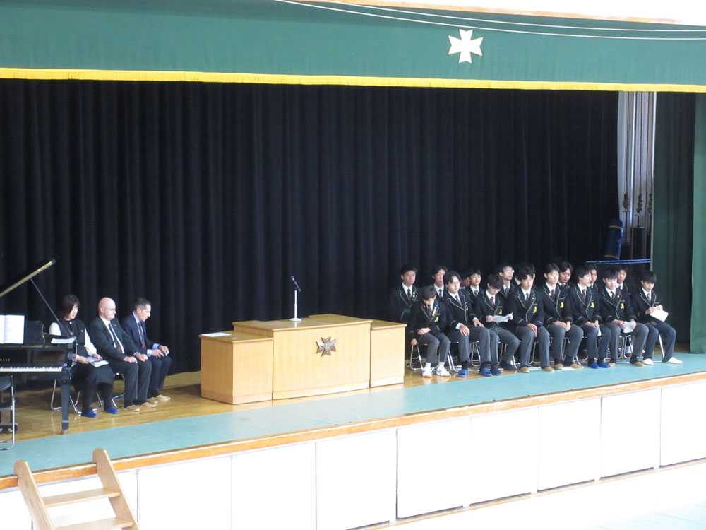 4月21日(月)の朝は、歓迎セレモニーが全校生徒で行われました。メルボルン高校長モディーニィ先生が挨拶を行い、メルボルン高校生徒を代表してベネティクト君が挨拶を日本語で行いました。