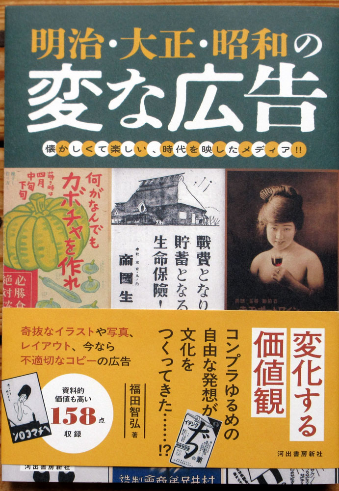 福田 智弘 氏(高36回)から「明治・大正・昭和の変な広告」の著書が寄贈されました 投稿日:2025/04/14 作成者: 事務局 [ 寄稿者:春日部高校同窓会事務局 ] 福田 智弘 氏(高36回)から「明治・大正・昭和の変な広告」の著書が同窓会展示室に寄贈されました。 昭和100年の本年にピッタリのレトロ感あふれ、楽しく読める書籍とのことです。広告写真満載で、その時代ならではのものが、たくさん掲載されています。 2025年3月 (株)河出書房新社 発行